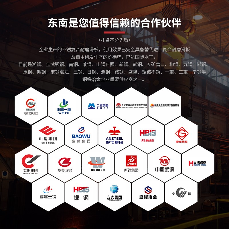目前已成功研制出新一代雙金屬復合耐磨滑板、復合階梯墊等是當前耐磨、防腐等優(yōu)越性為一體的新型產(chǎn)品,該產(chǎn)品最大優(yōu)點特性是表面無裂紋、保證高耐磨,防腐蝕,同時具有很高抗沖擊韌性和抗裂特征。產(chǎn)品以DNTZ80優(yōu)質(zhì)高強度低碳合金鋼鍛件為基材,采用熔焊焊接工藝而成,其不僅大幅提高了階梯墊耐磨性能及抗沖擊性能。產(chǎn)品表面更耐磨,品質(zhì)更優(yōu)越,使用壽命更長,是現(xiàn)在市面上所生產(chǎn)同類產(chǎn)品的使用性能3倍以上。